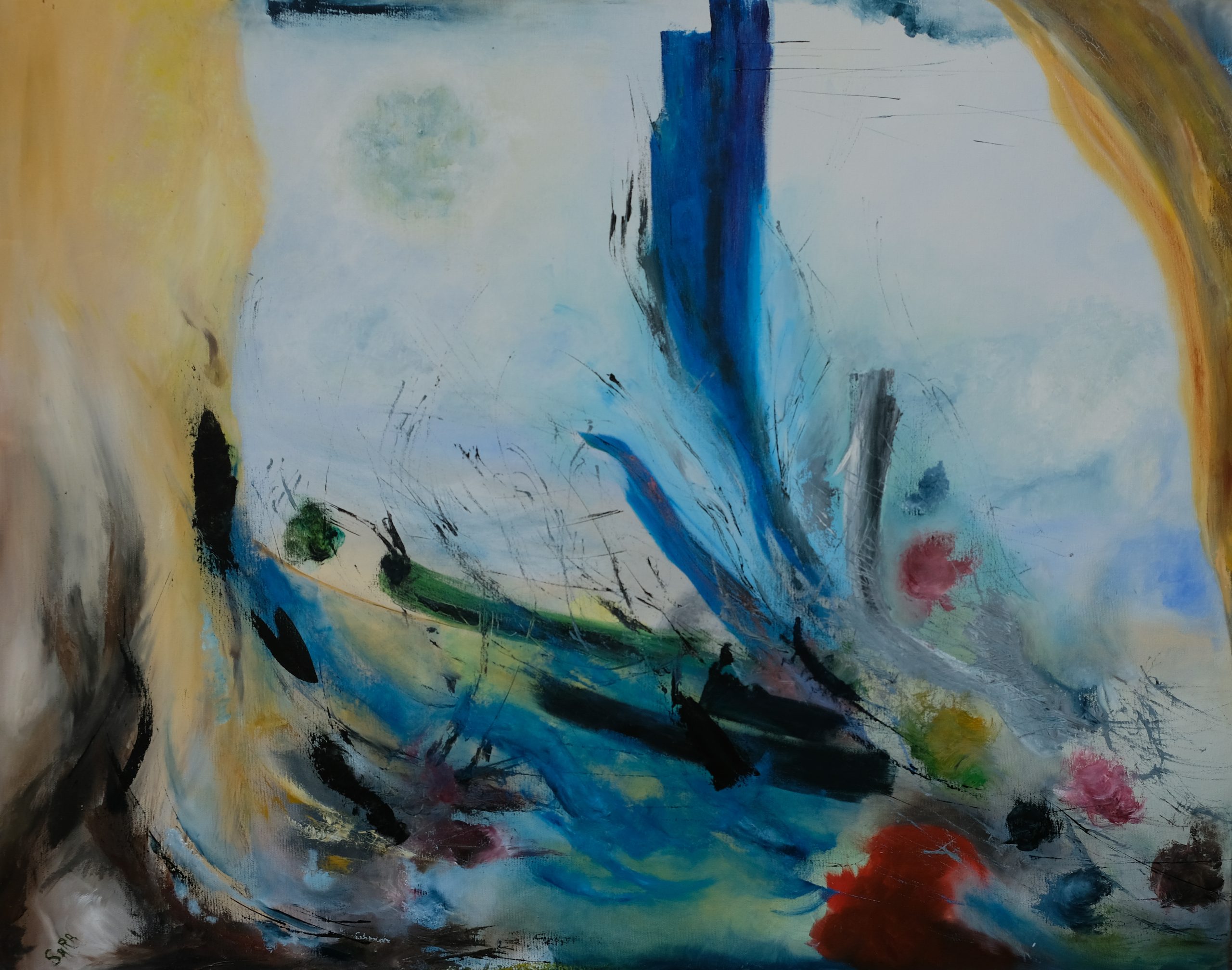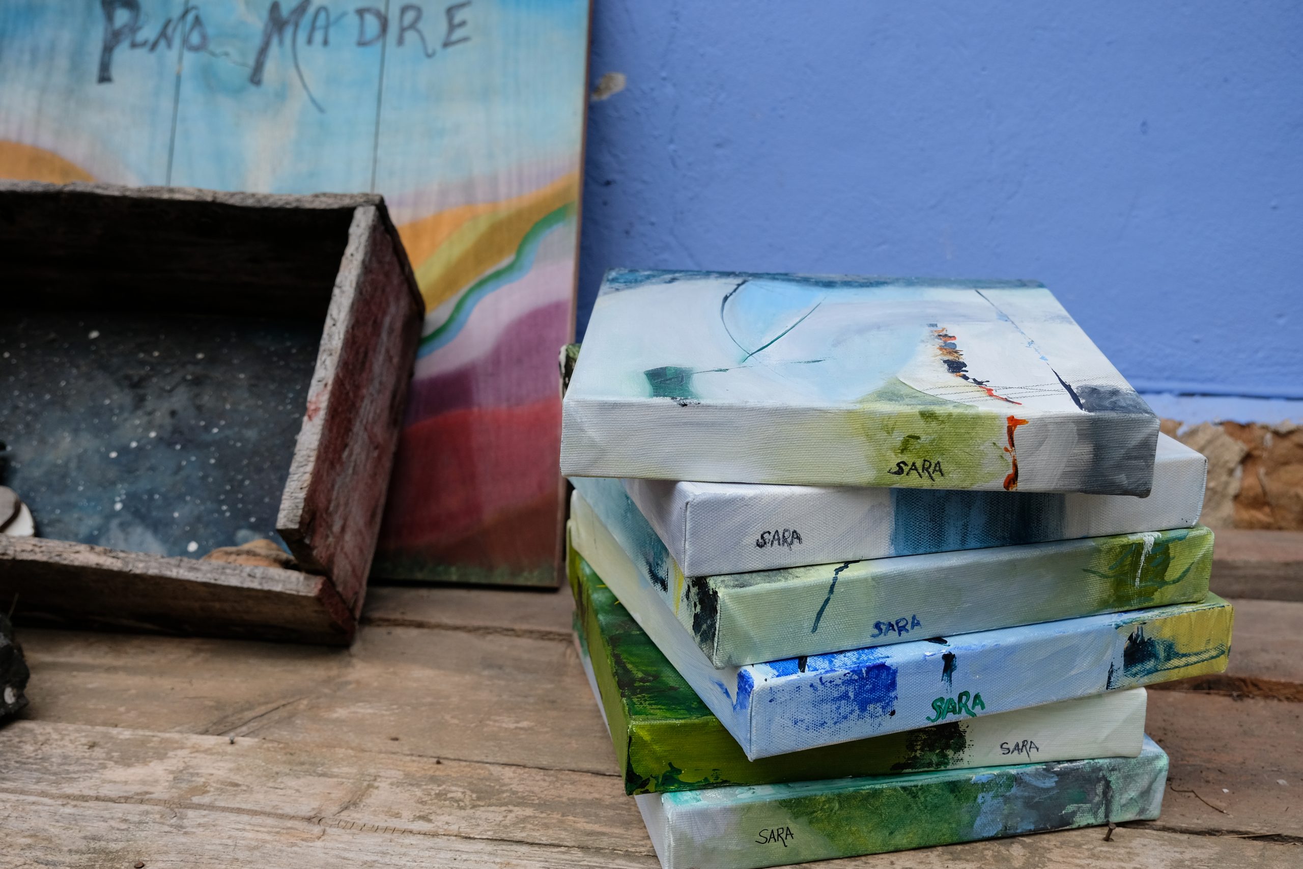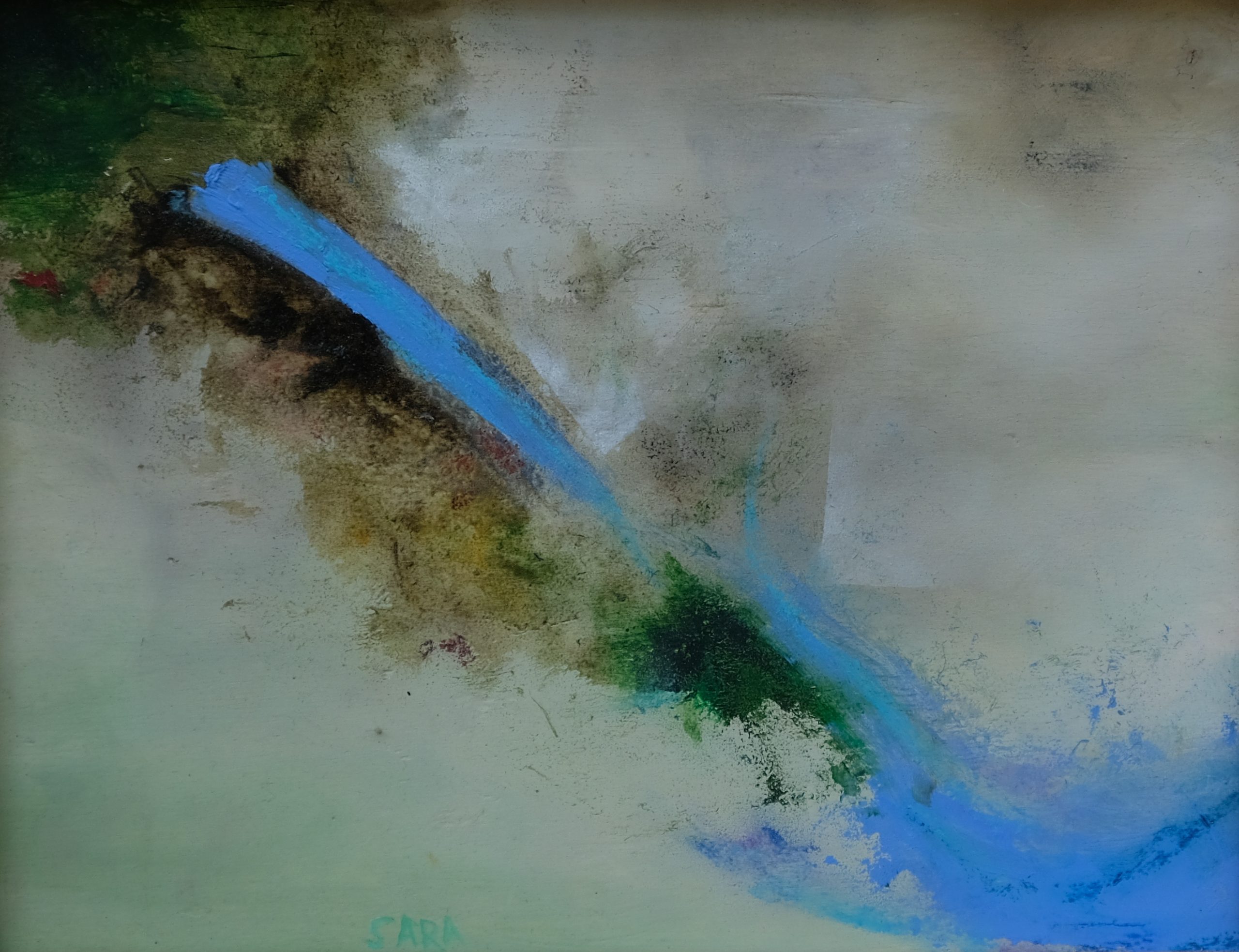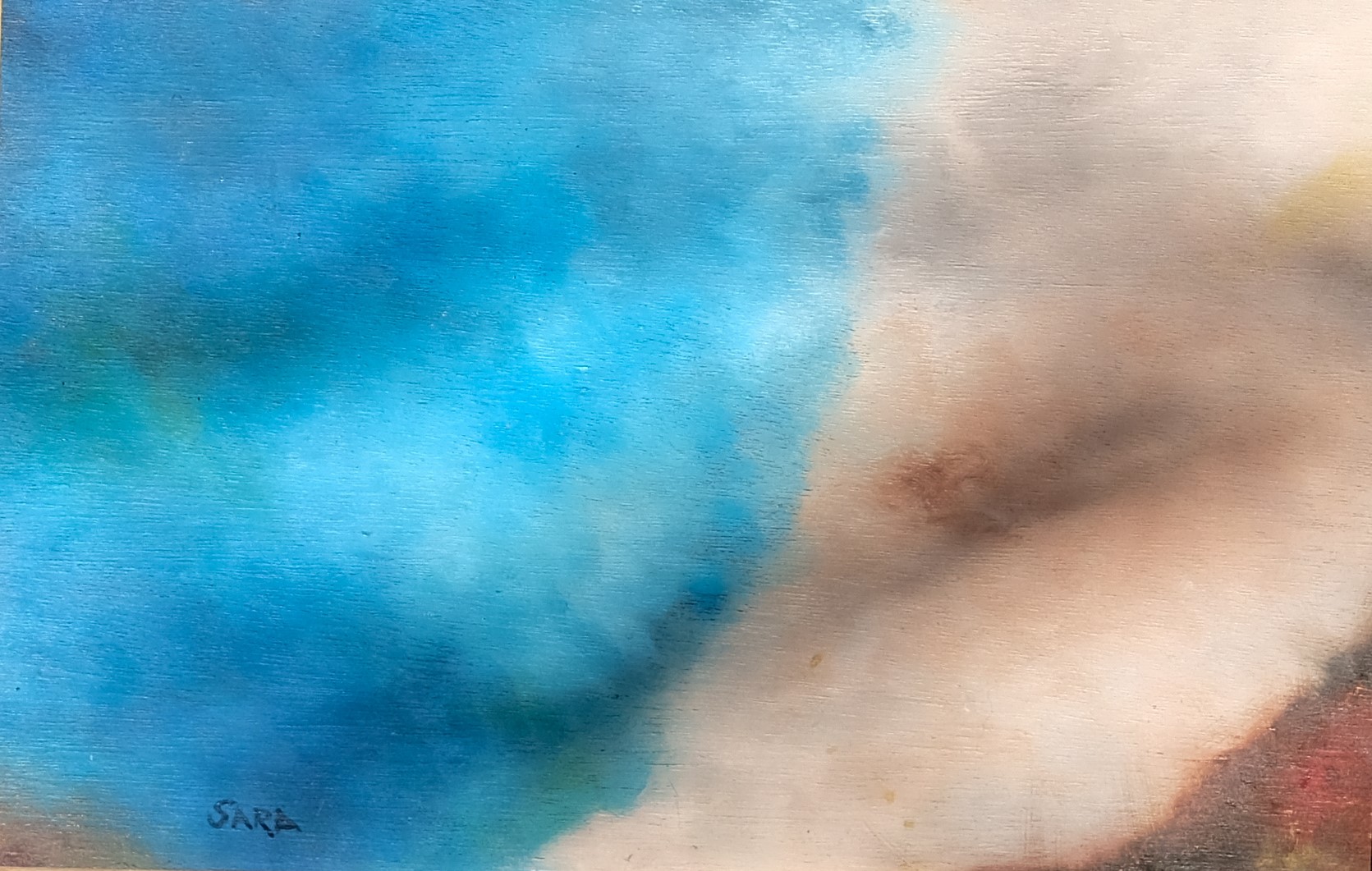 Aceites, pigmentos, aguarrás, madera vieja y astillada, la pincelada de azul que sí tenía clara desde el principio y yo.
