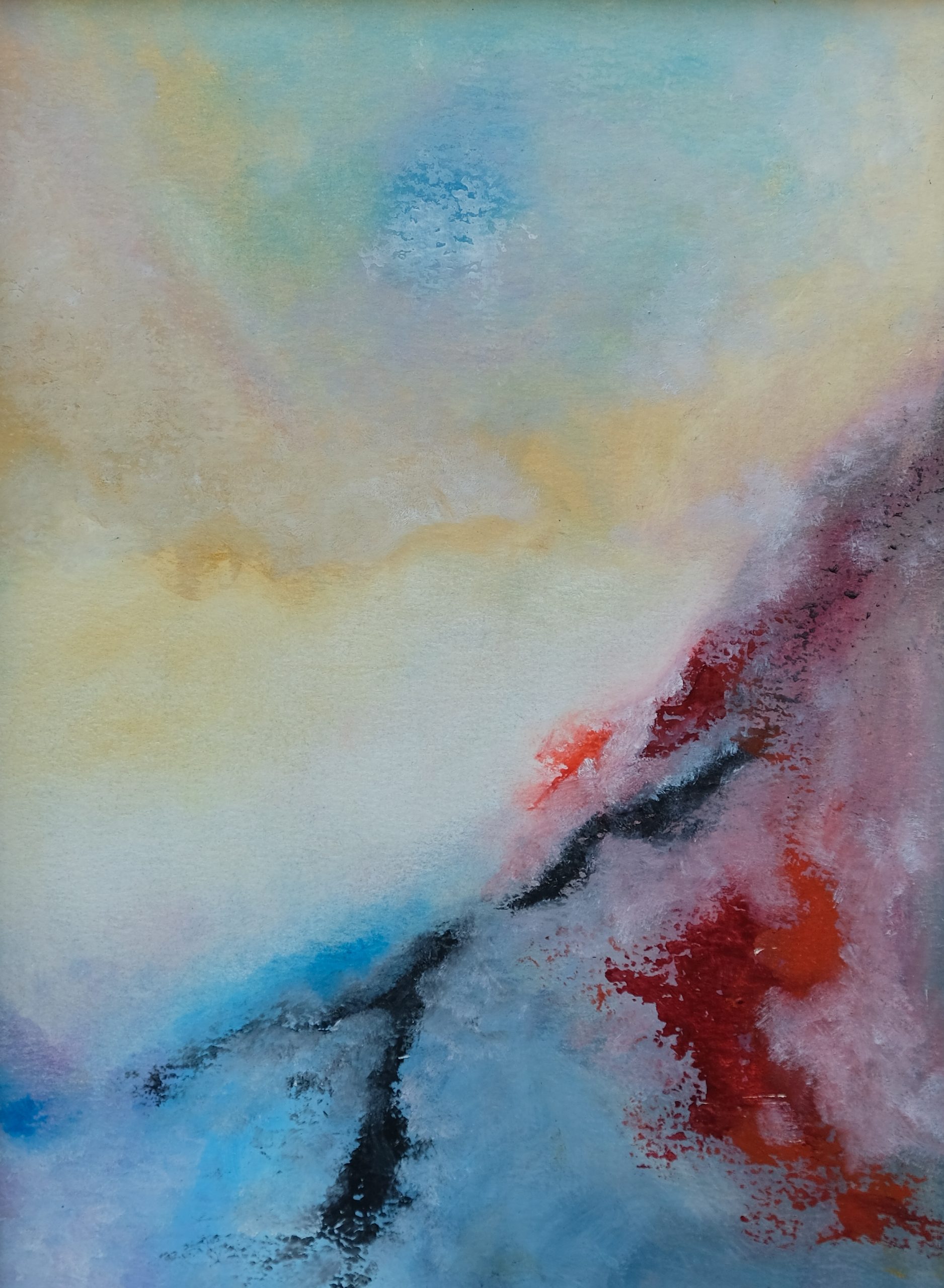 El color es la falta de azul dictada por el consciente ante una prueba pictórica; el reflejo acuarelado del óleo sobre el buen papel; la inclinada línea de ese antebrazo horizontal en rojos.